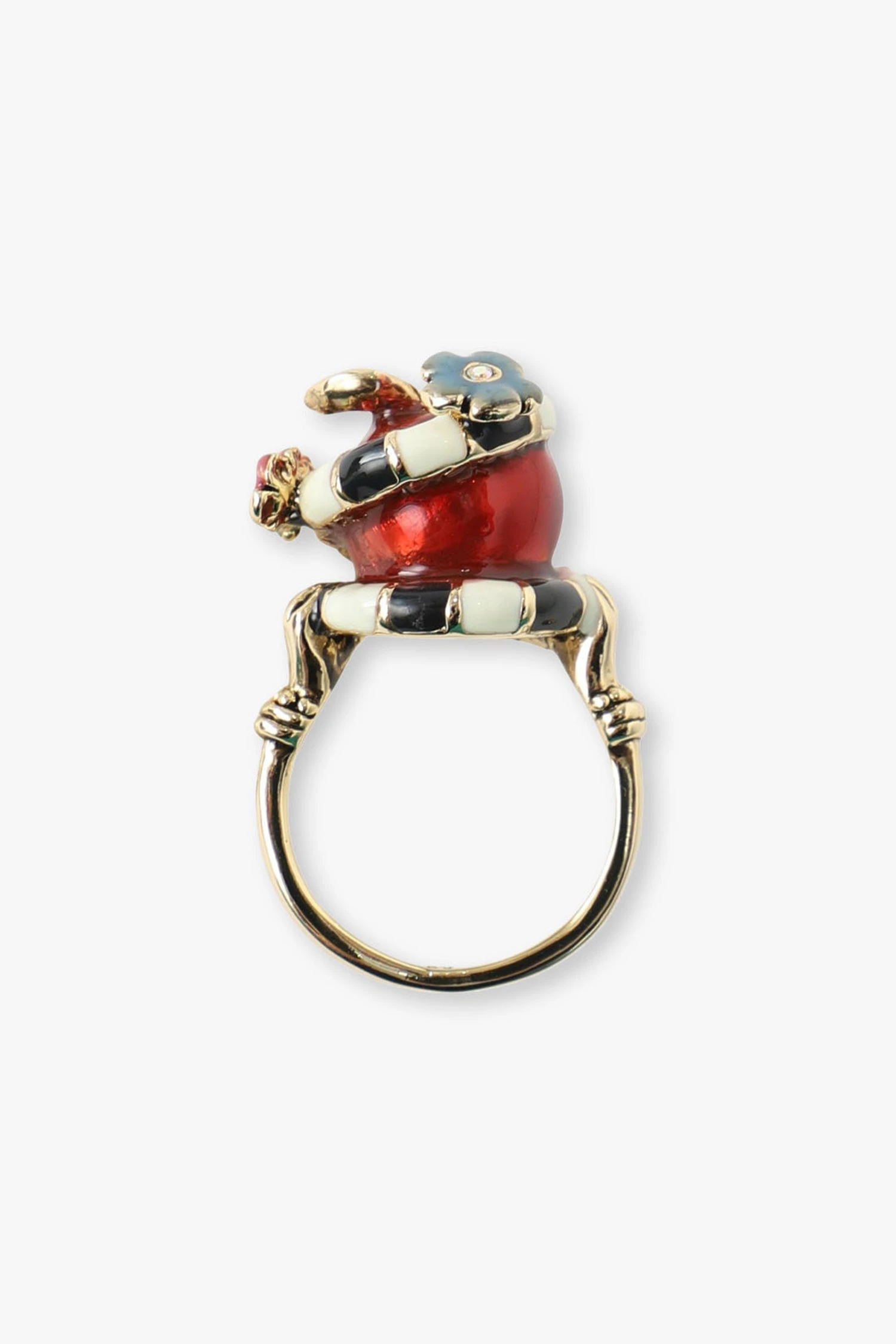 - Gold toned checkerboard floral snake wrapped around a red apple